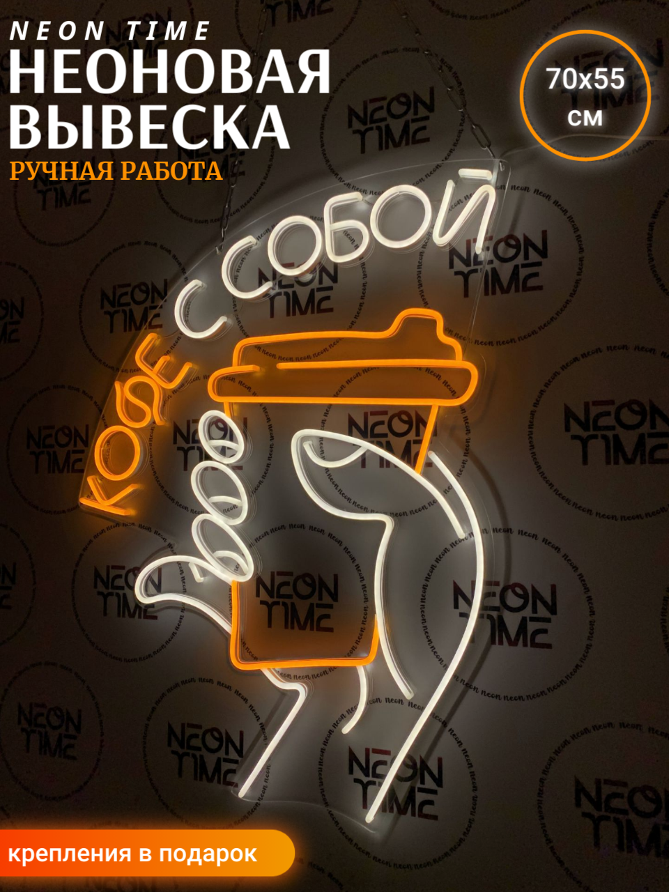 Неоновая вывеска "кофе с собой"