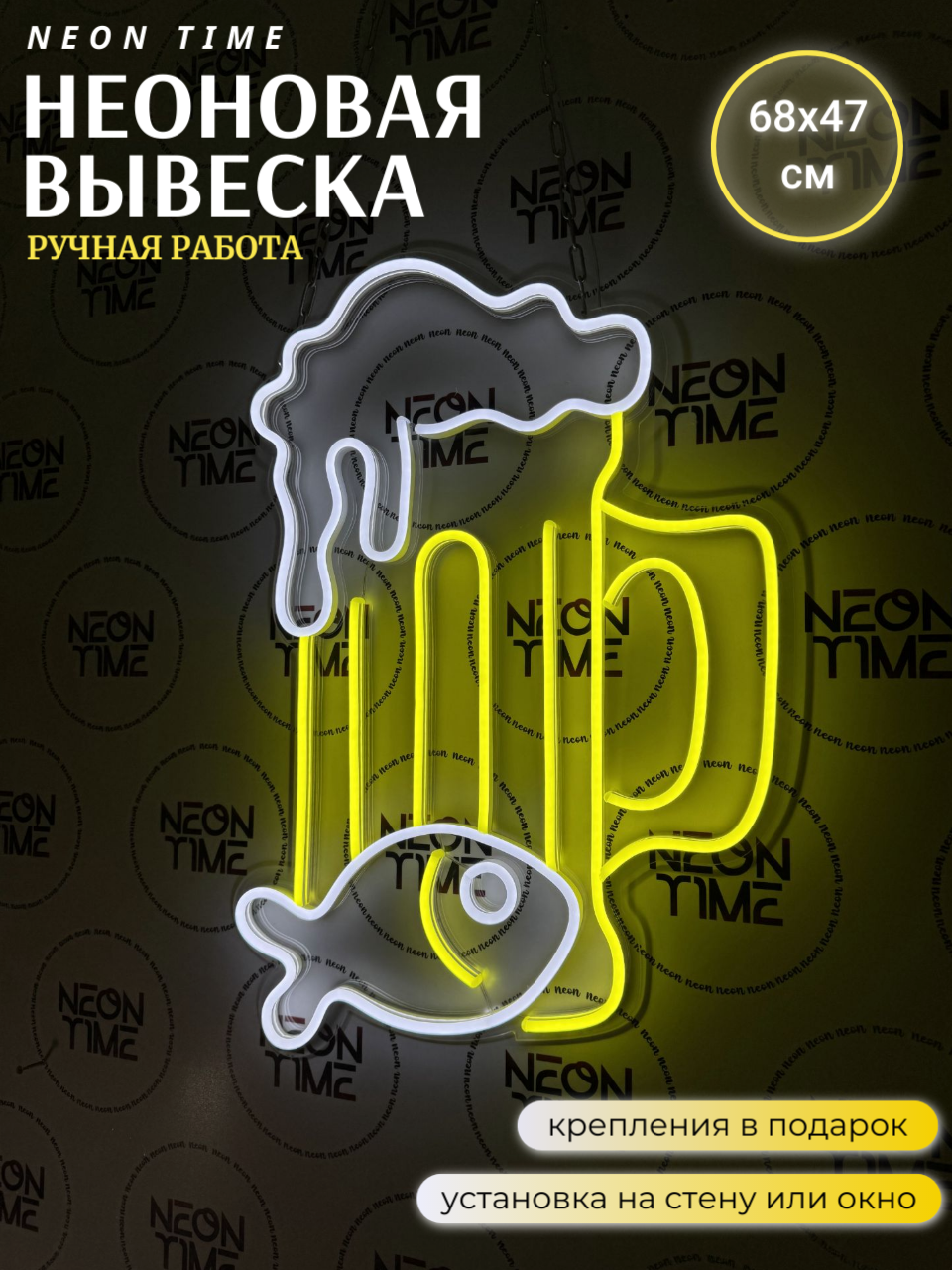 Неоновая вывеска пивной стакан