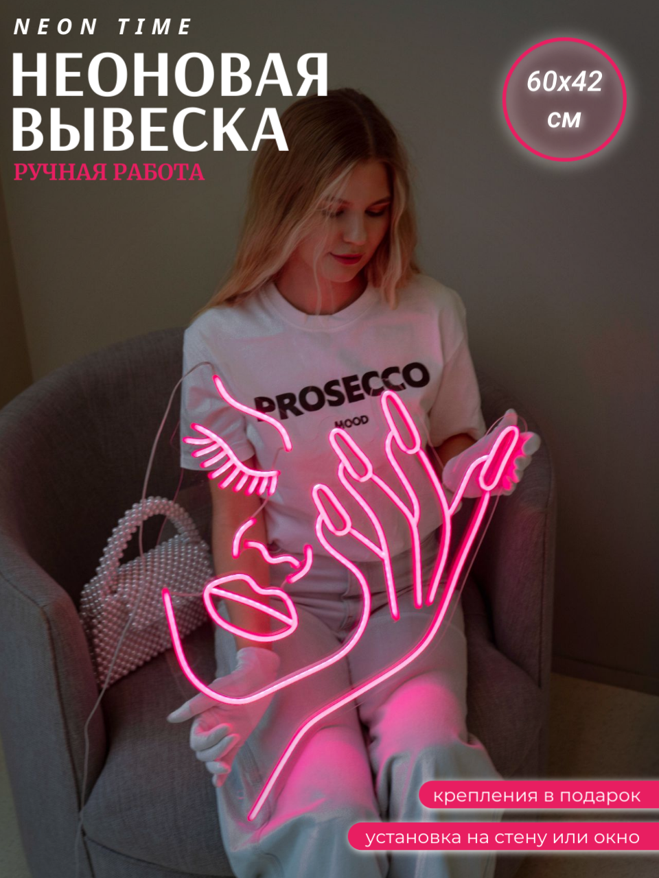 Неоновая вывеска "соберем ваши чувства в букет"