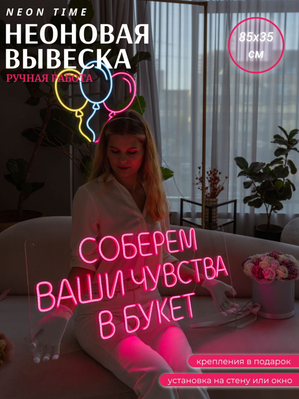 Неоновая вывеска "соберем ваши чувства в букет"