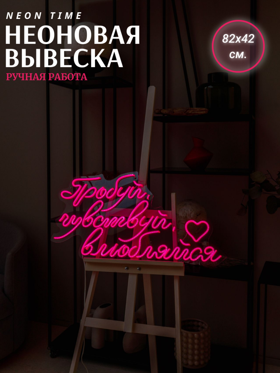 Неоновая надпись "пробуй, чувствуй, влюбляйся"