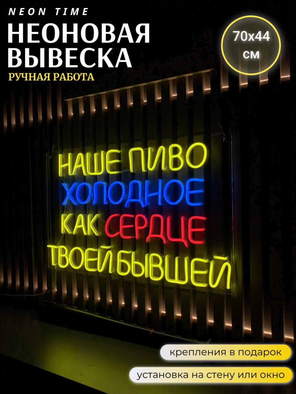 Неоновая вывеска "наше пиво холодное как сердце твоей бывшей"