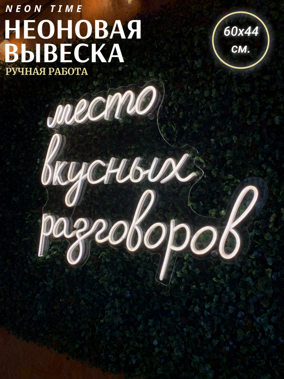 Неоновая вывеска "место вкусных разговоров"