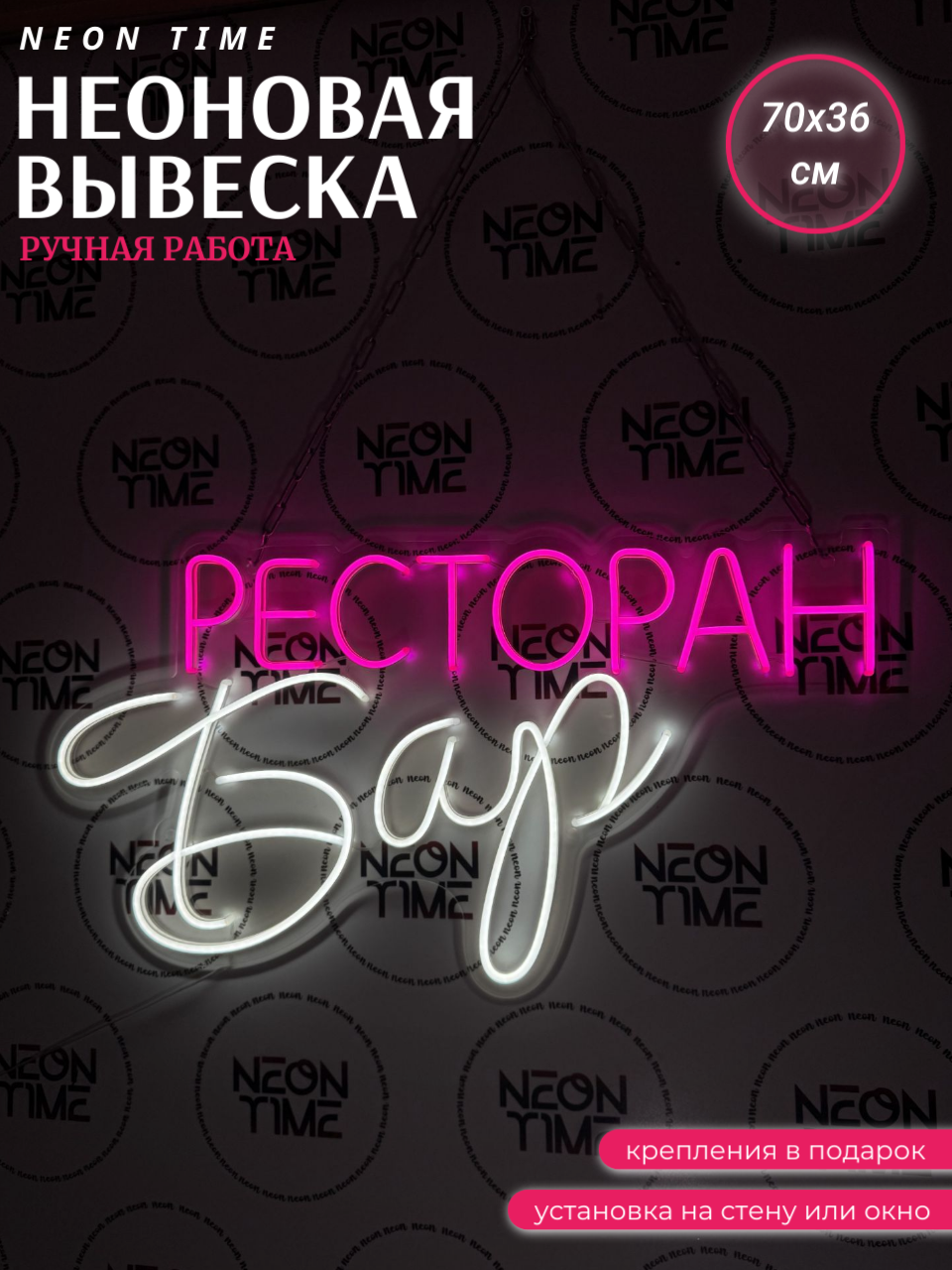 Неоновая вывеска "ресторан бар"