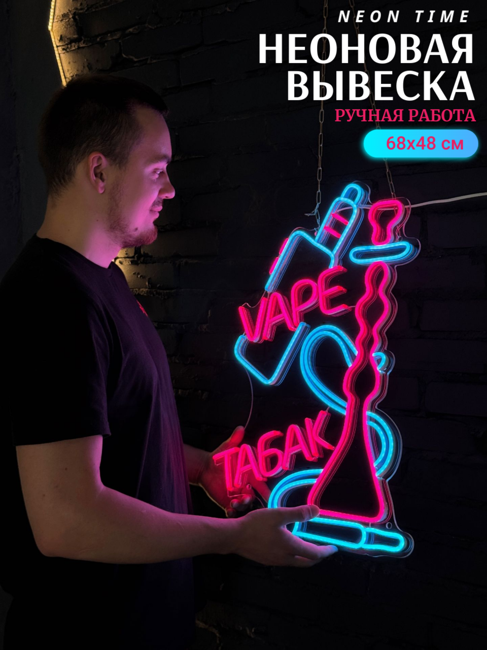 Неоновая вывеска "табак VAPE"