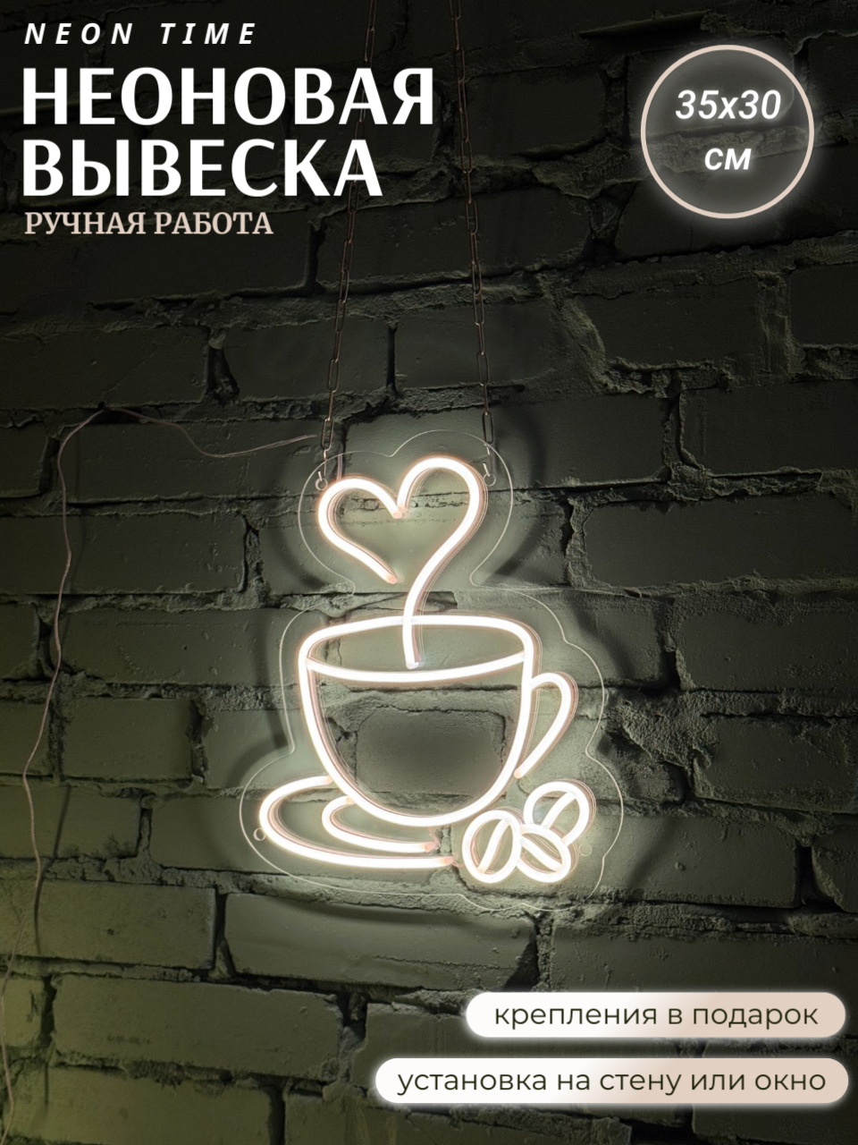 Неоновая вывеска "счастье нельзя купить, но можно купить капучино"