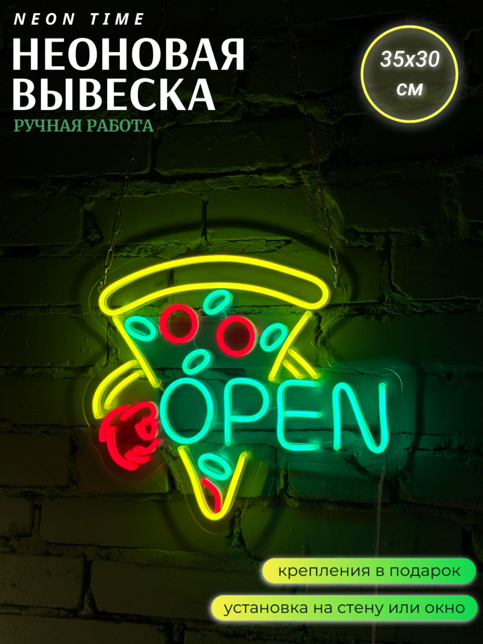 Неоновая вывеска пицца "open" | NEONTIME